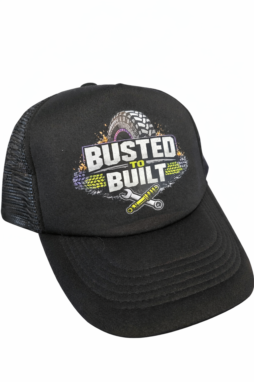 Rock the Busted to Built vibe with our classic trucker snap back featuring our vibrant color logo. This black cap delivers that perfect blend of casual cool and brand pride - whether you're hitting the gym, running errands, or just keeping it real. The structured trucker style with snap back closure gives you that timeless look that never goes out of style. Show your support for the grind with every wear!